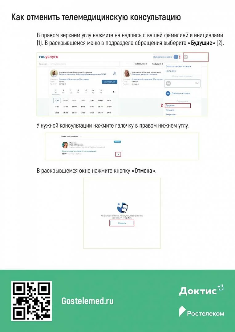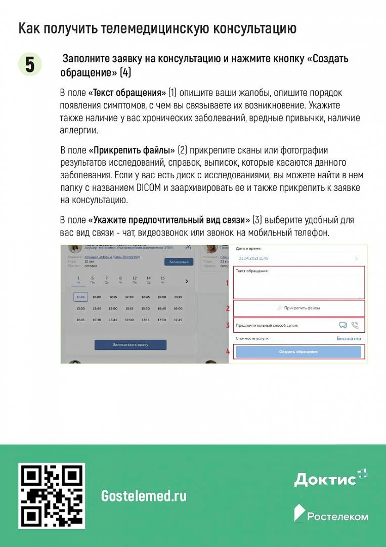 Предлагаем ознакомится с новой системой телемедицинских консультаций "Доктис" на портале "Госуслуги", благодаря которой Вы можете пообщаться со специалистом не выходя из дома.