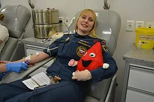 Стартовала предпраздничная донорская неделя 26 апреля в Главном управлении МЧС России по Калининградской области, где прошел день донора под девизом «Донорство у нас в крови!». Выполнить свой гражданский долг в мобильный пункт сдачи крови пришли 55 спасателей. В общей сложности они сдали около 21,6 литра цельной донорской крови, которая будет использована для оказания помощи пострадавшим в чрезвычайных ситуациях.